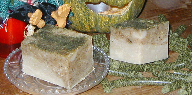 die Seife relativ fett ist (von der Mandelmilch), der Kürbispreßkuchen wurde